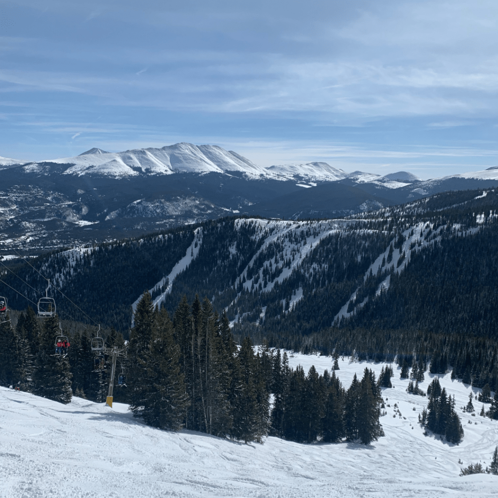 Peak 8 is known as the area where beginners and young children go since it has Green trails galore and it’s where the ski schools are based. So it may come as a surprise that one of our favorite Black Diamond/Blue runs is on Peak 8. Duke’s Run is a pretty steep, but groomed, trail that you can access by riding the Rocky Mountain SuperChair at Peak 8. It starts as a Black Diamond before turning into a Blue. While the top is steep, most intermediate skiers should be able to handle the terrain. And since it’s listed as a Black Diamond at the top, Duke’s Run doesn’t tend to be as crowded as some of the other runs on Peak 8 (score). The two best times to shred Duke’s Run are in the morning when the mountain first opens (get those groom lines, babeeee) and after a fresh snowfall (the pow is amazing, and the trees lining the trail are incredible with the right snow).